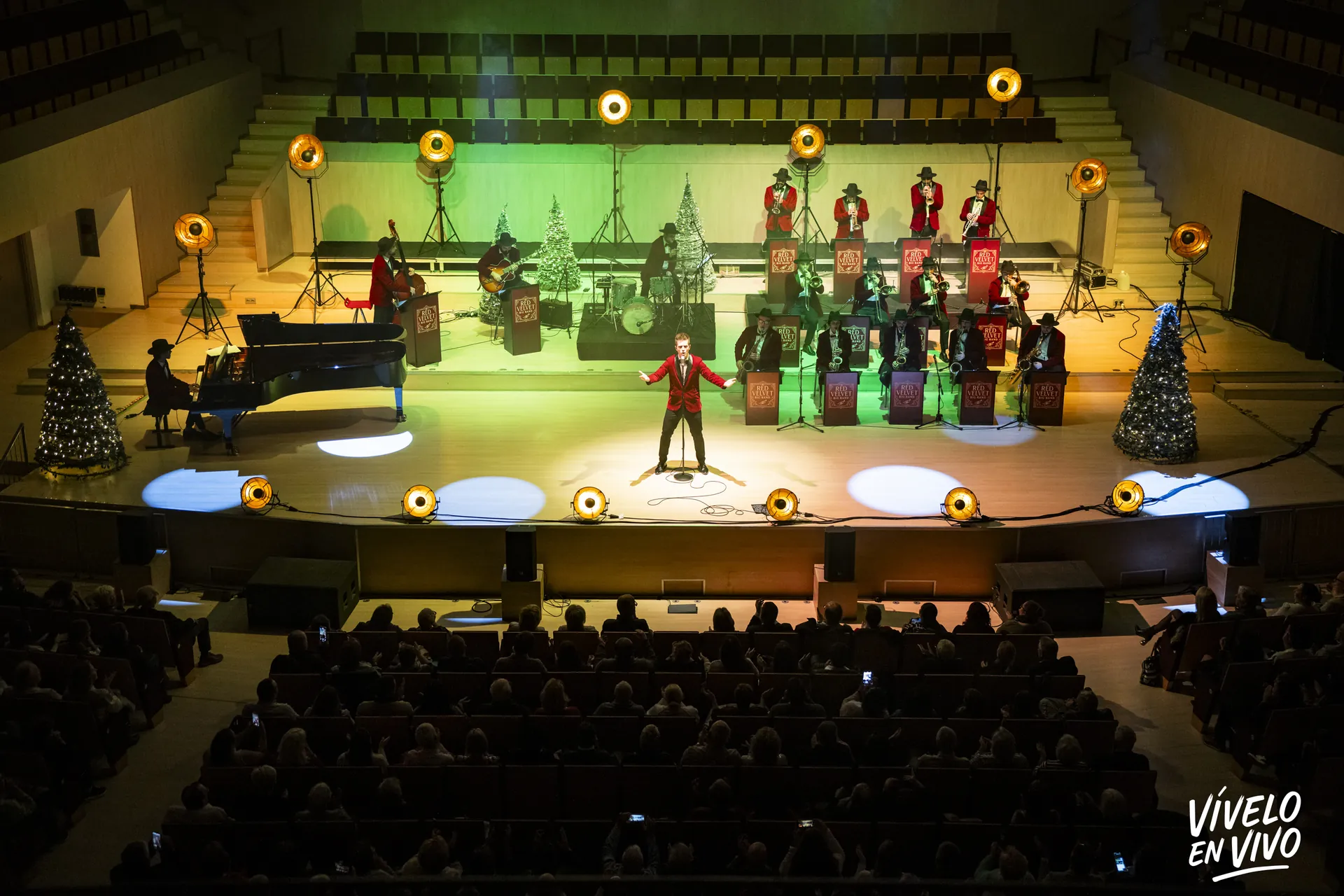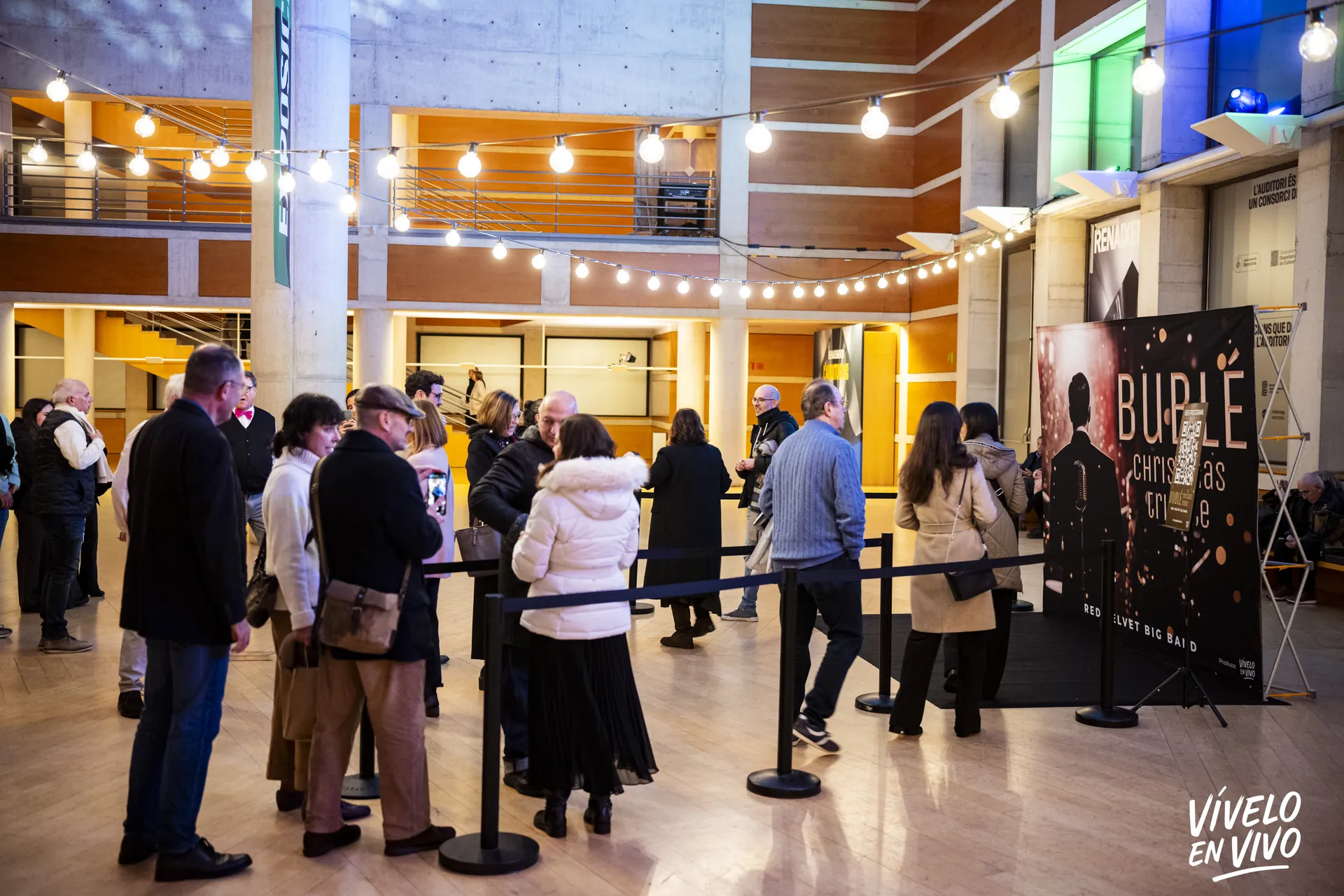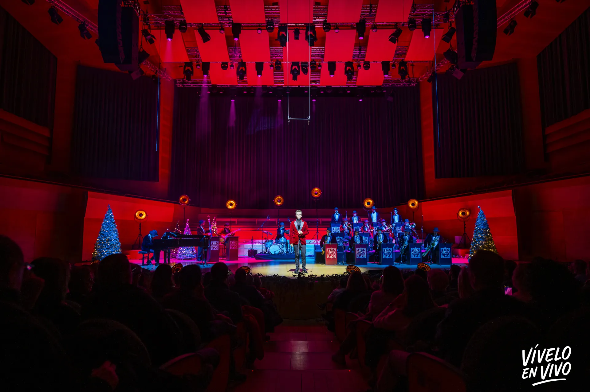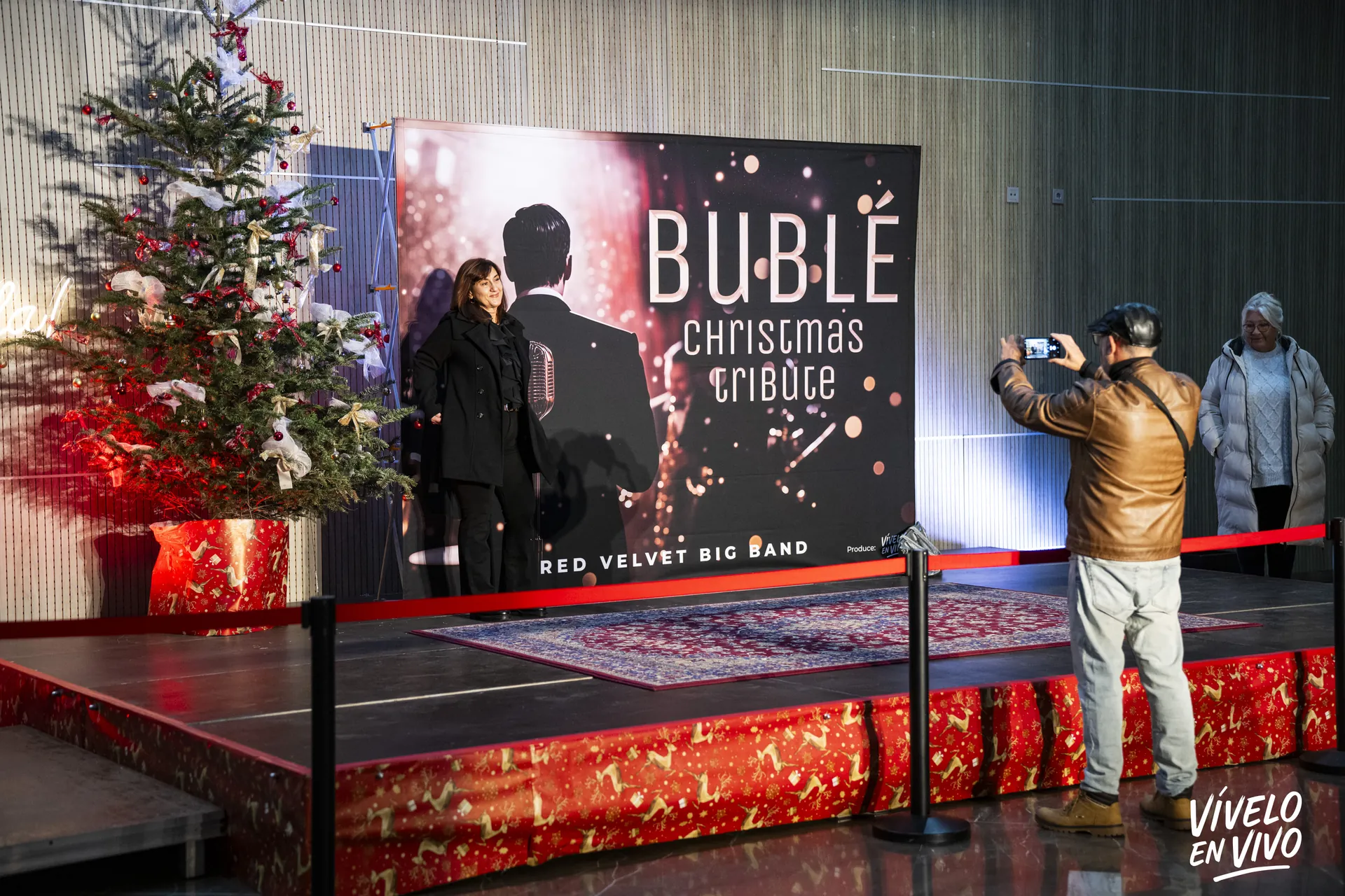 y el texto que acompaña: Vive la velada navideña más romántica y sofisticada. Bublé Christmas Tribute te invita a un viaje nostálgico al glamour de los años 40, combinando la magia de Michael Bublé con una Big Band de 17 músicos. Siente la calidez del swing, las luces tenues y la emoción de la época dorada del jazz.