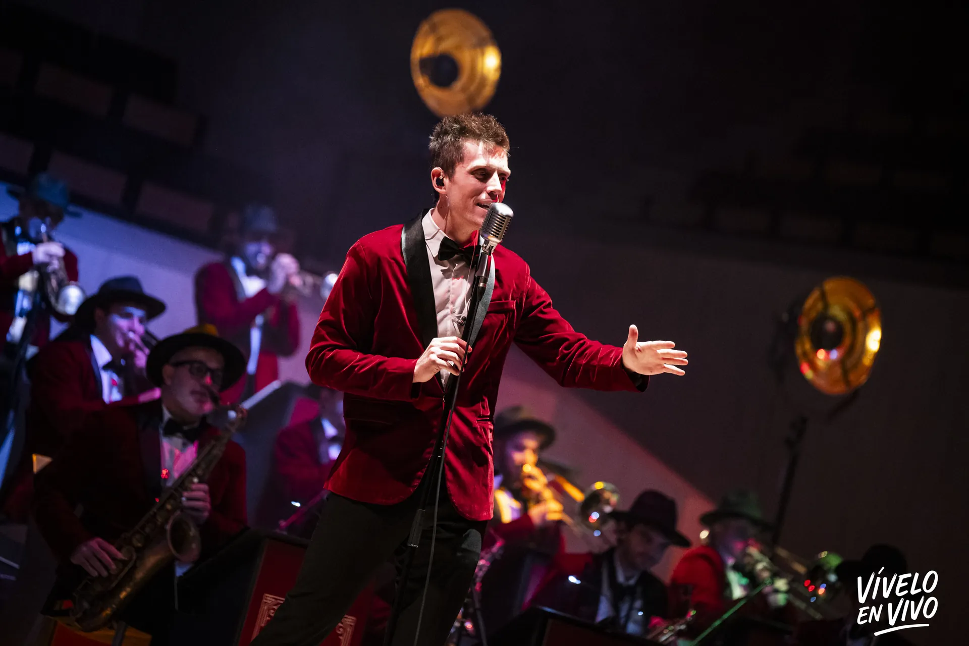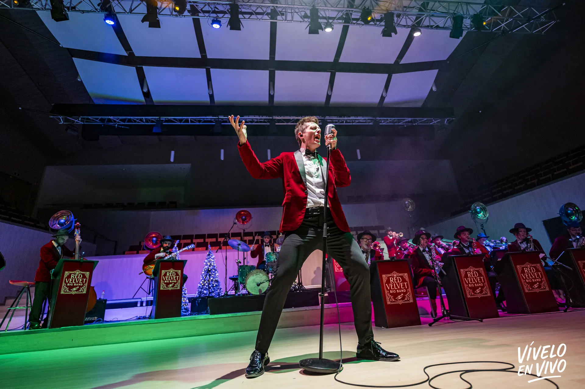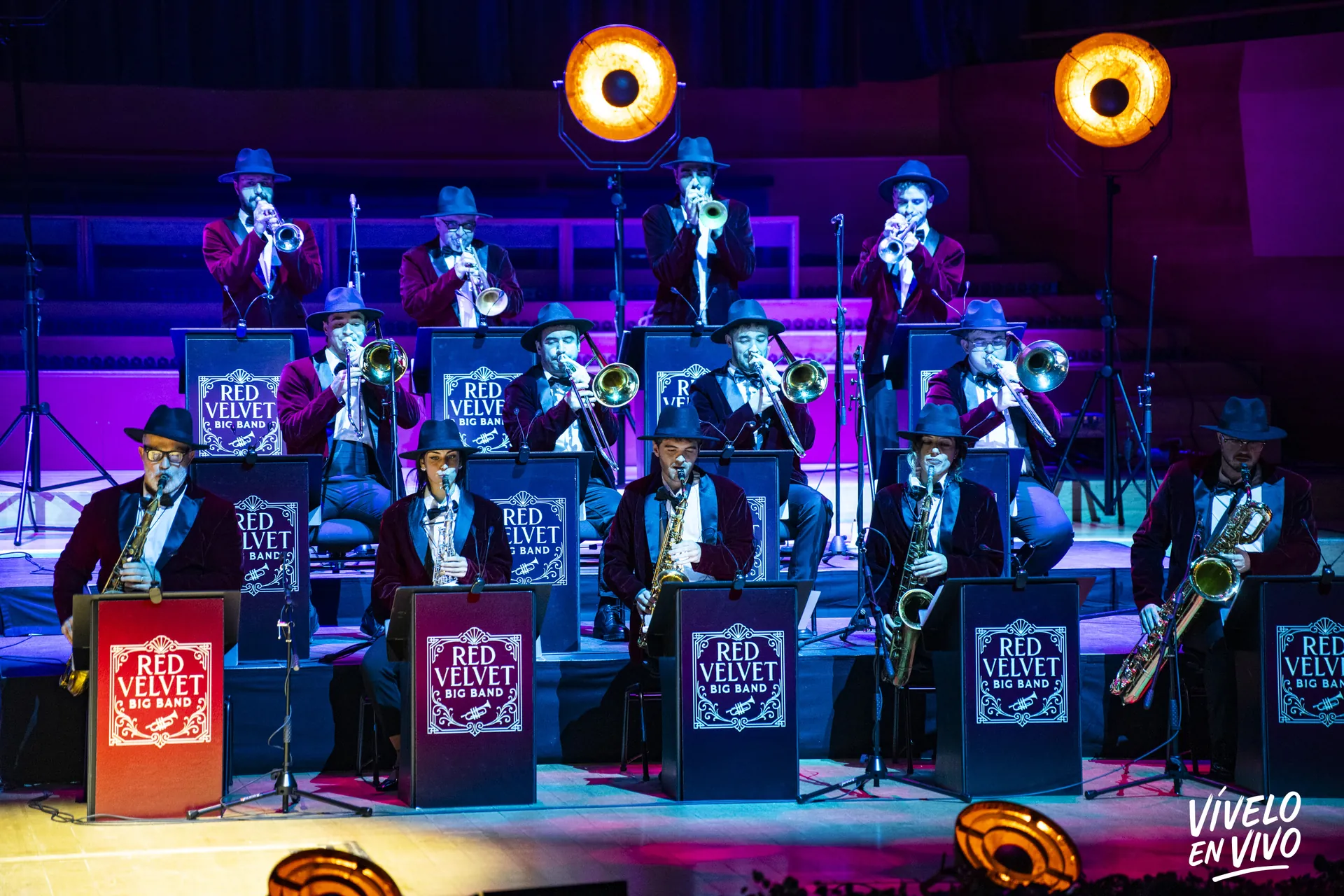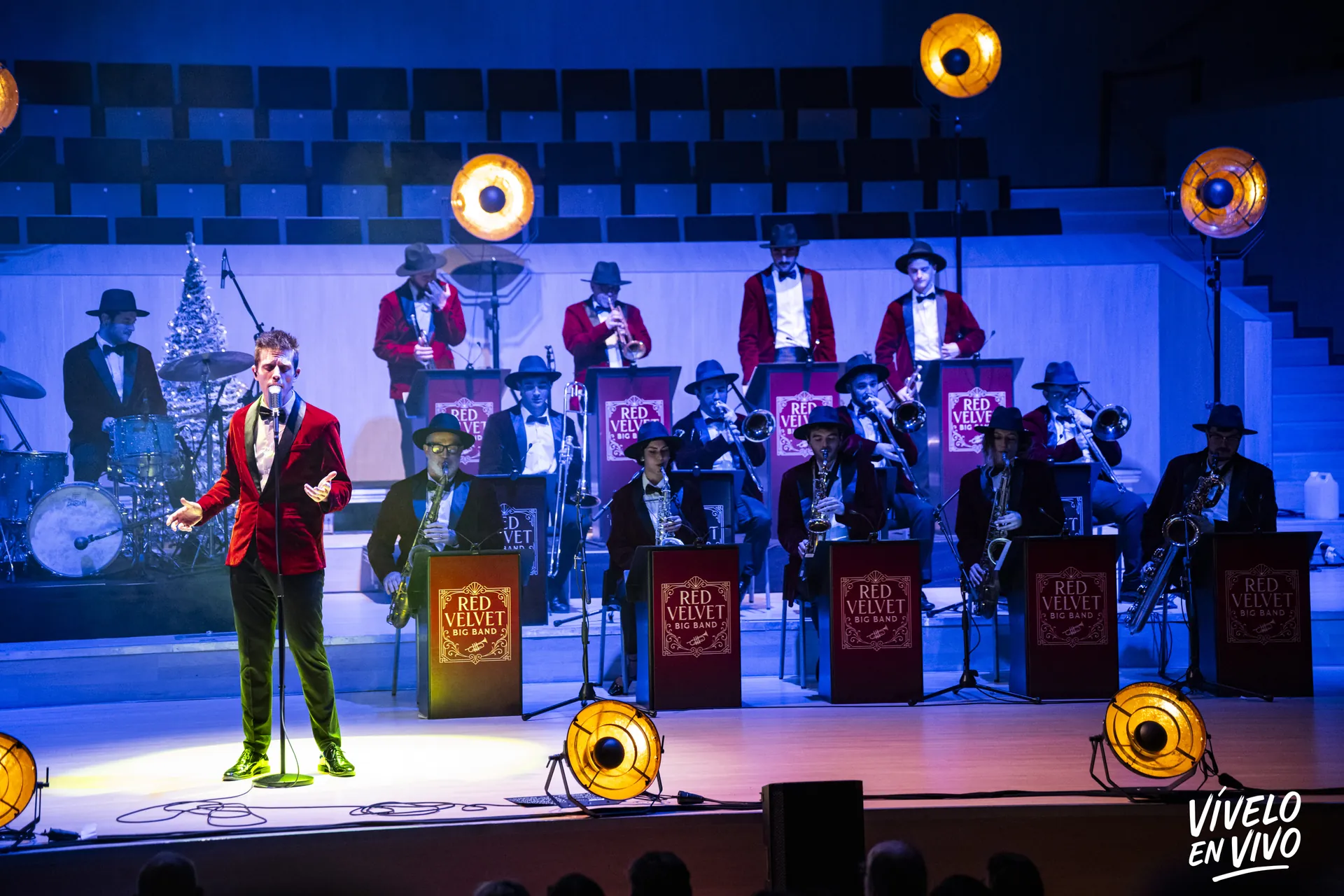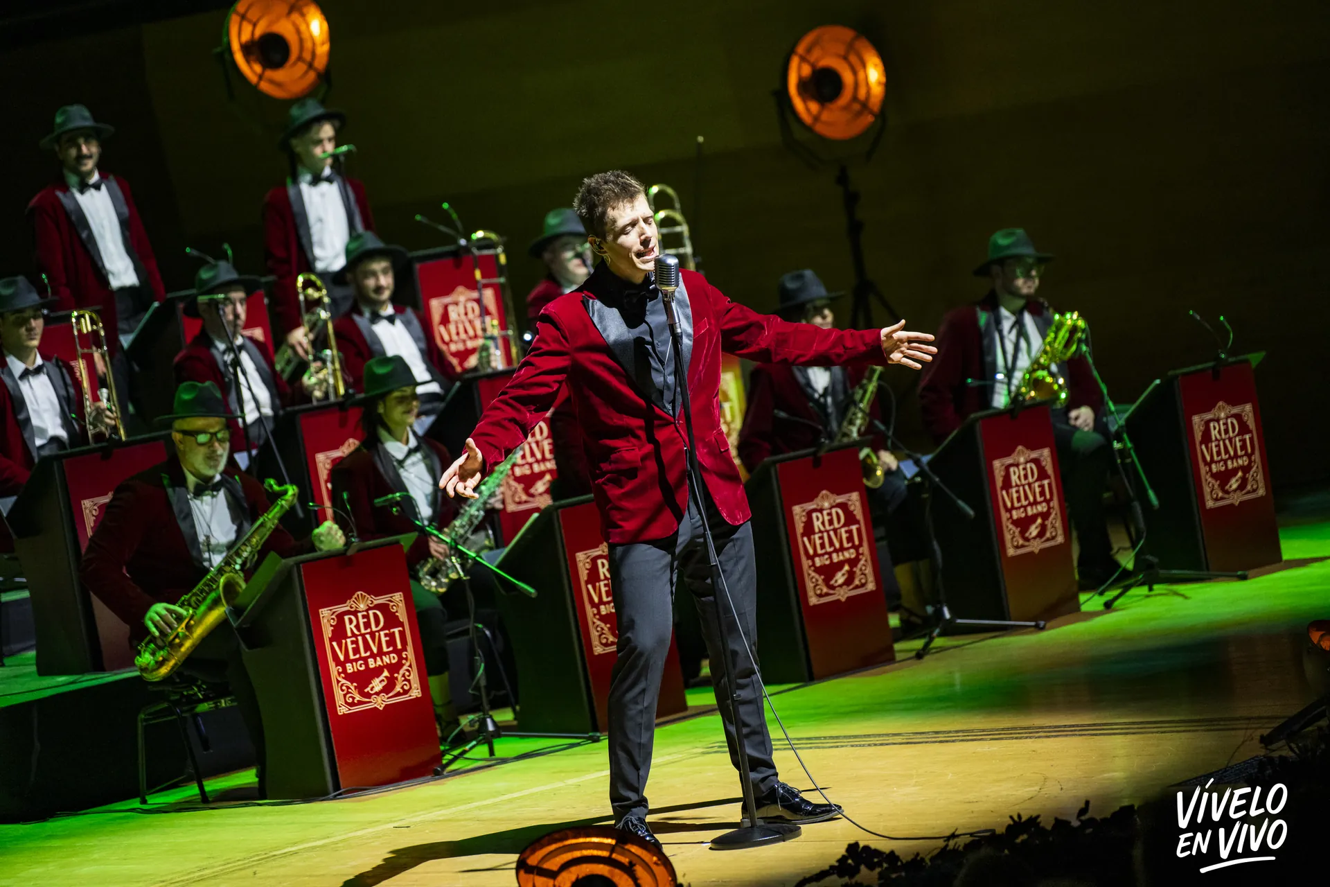 Red Velvet Big Band domina el escenario con una formación espectacular que rinde homenaje a la era dorada del jazz. Su sonido combina brasses potentes, una sección rítmica impecable y una voz solista que captura la esencia cálida y cinematográfica del gran crooner contemporáneo.